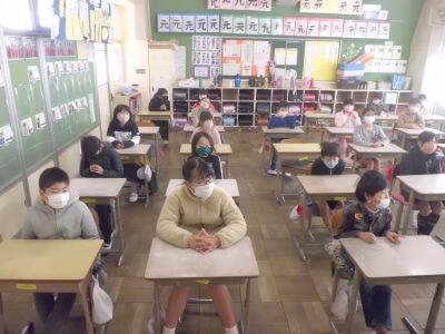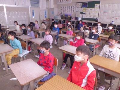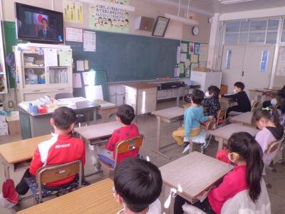 各教室のテレビ画面で校長先生のお話を聞きました。
