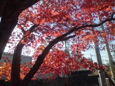 南校舎の前のもみじだけが、まだ赤い色を保っています。