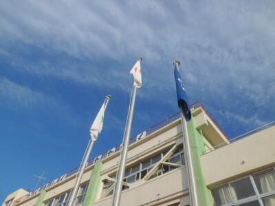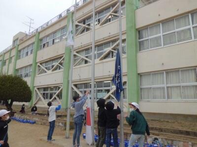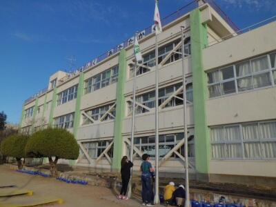 運動委員の児童が、今年最初の旗当番のしごとをしてくれました。