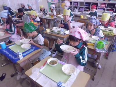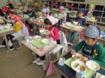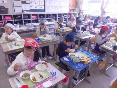 たくさんの方のおかげで、今日もおいしい給食を食べることができます。