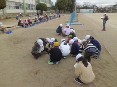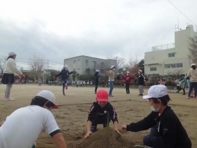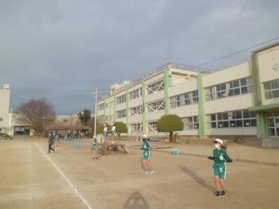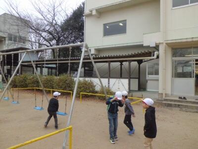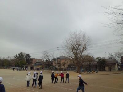 昼休み、子どもたちが外で遊び始めたところ、空からみぞれが落ちてきました。