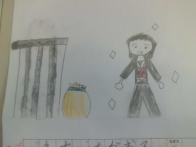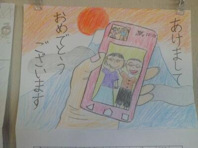 冬休みの宿題の絵日記が廊下に掲示してあります。