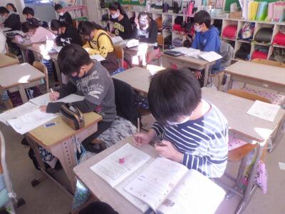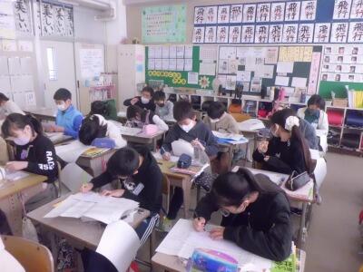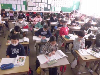 国語の授業で「すがたをかえる大豆」という説明文を読んだ3年生。
