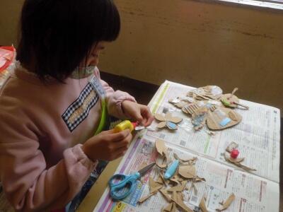紙粘土に絵の具で色を付け、いろいろな動物を配置しました。