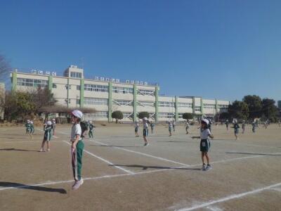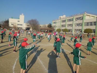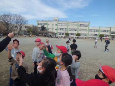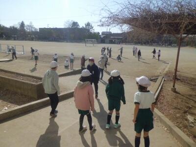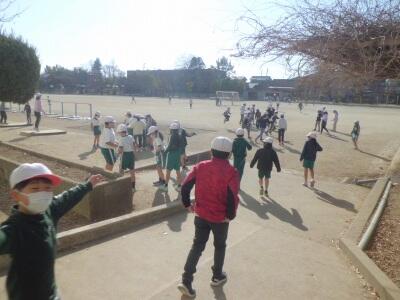 風が冷たい昼休みでしたが、校庭ではたくさんの子どもたちが遊んでいました。