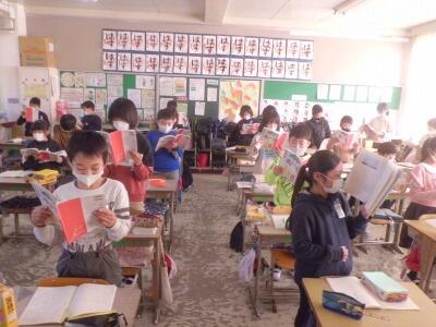 教科書から該当する文字を見つけて指で指すゲームをしました。