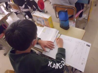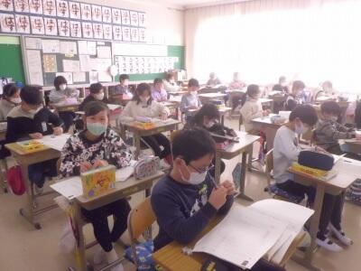 国語の授業で「すがたをかえる大豆」という説明文を読んだ3年生。