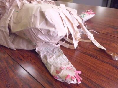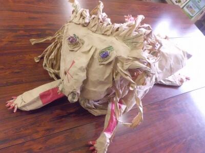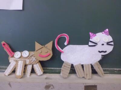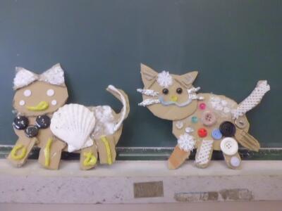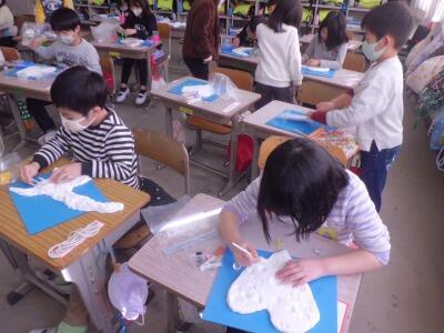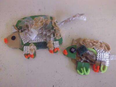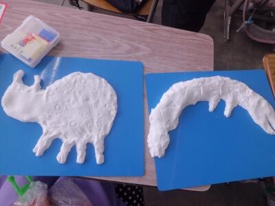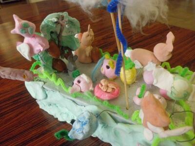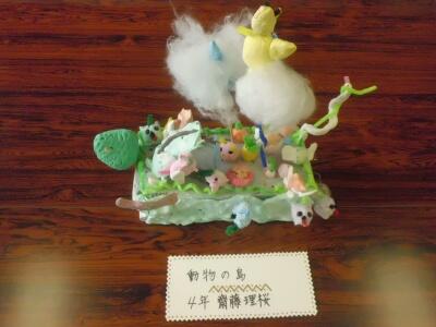 紙粘土に絵の具で色を付け、いろいろな動物を配置しました。