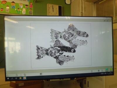 2年生の生活科の授業では、小さいころの写真がこんなに大きく映し出されていました。
