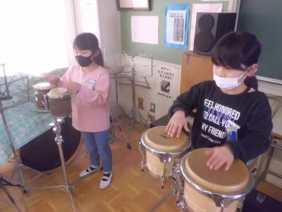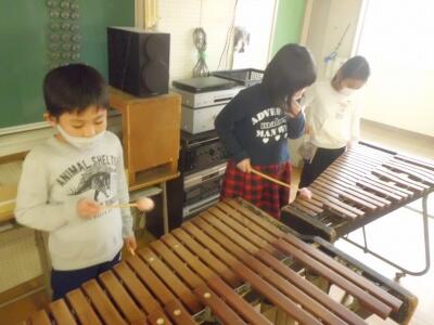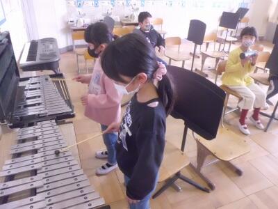 「さがしてみよう ならしてみよう」という曲に合わせて楽器を鳴らします。