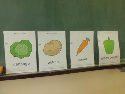 4人が一斉に、それぞれの野菜の名前を英語で言います。