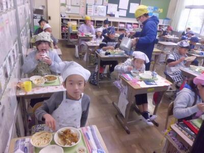 たくさんの方のおかげで、今日もおいしい給食を食べることができます。