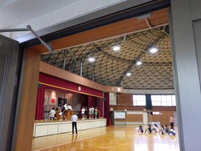 たくさんの児童が、校長先生から賞状を受け取りました。