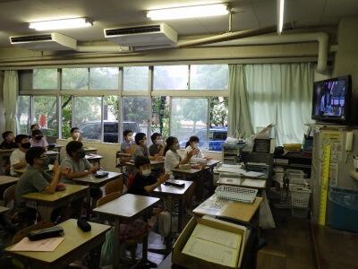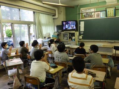 表彰の様子はグーグルクラスルームで教室に中継されました。