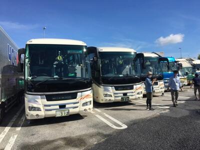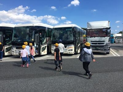 トイレ休憩をしました。学校到着時刻が早まりそうです。