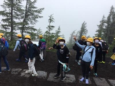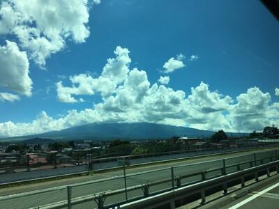 雲に半分隠れてしまった富士山が後方に流れていきます。