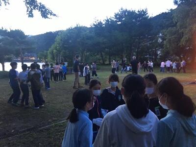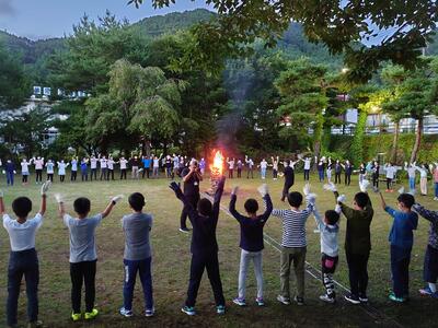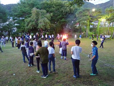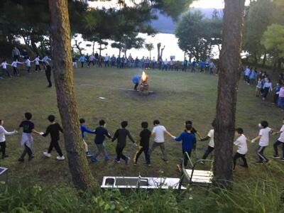 炎も小さくなり、キャンプファイヤーが終わりになります。