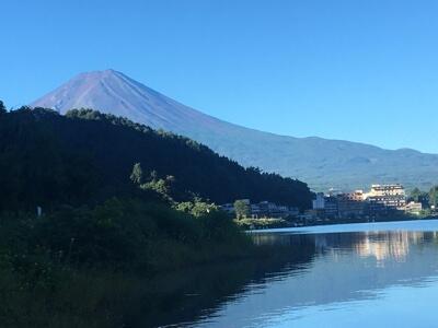 朝の河口湖。鳥のさえずりが聞こえてきます。