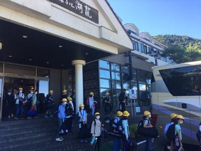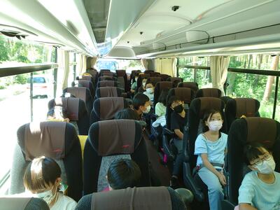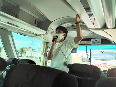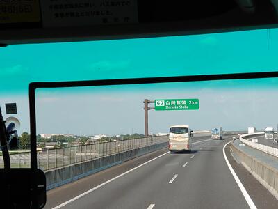 トイレ休憩をしました。学校到着時刻が早まりそうです。