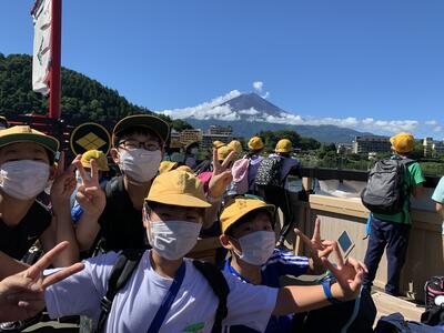 昨年度はZoomによる朝会、1学期は校庭での朝会と、状況に合わせて行ってきました。