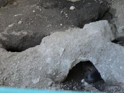 「おはぎ」と「きなこ」は穴の中。体の一部だけが見えています。