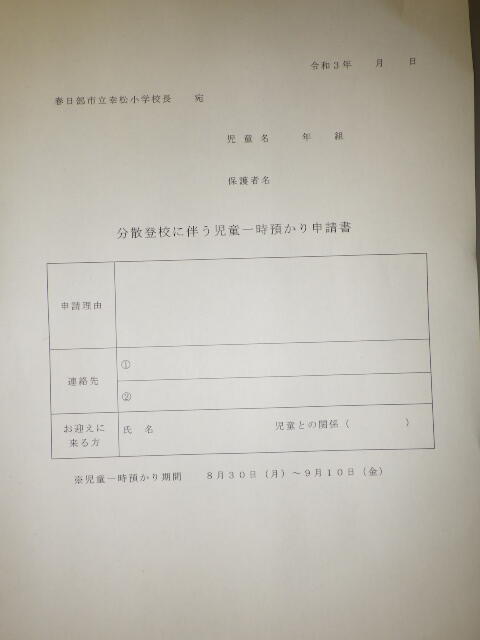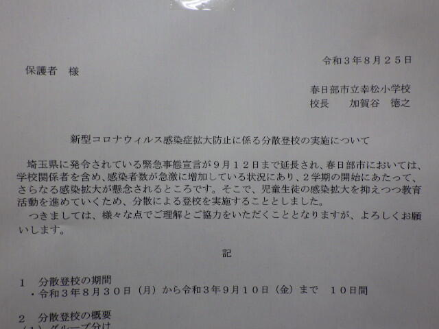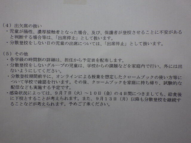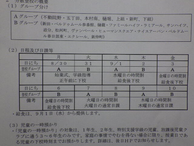 分散登校の日程等について