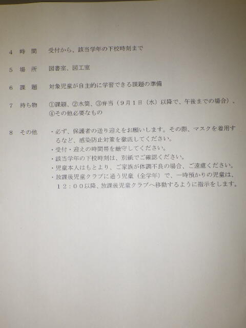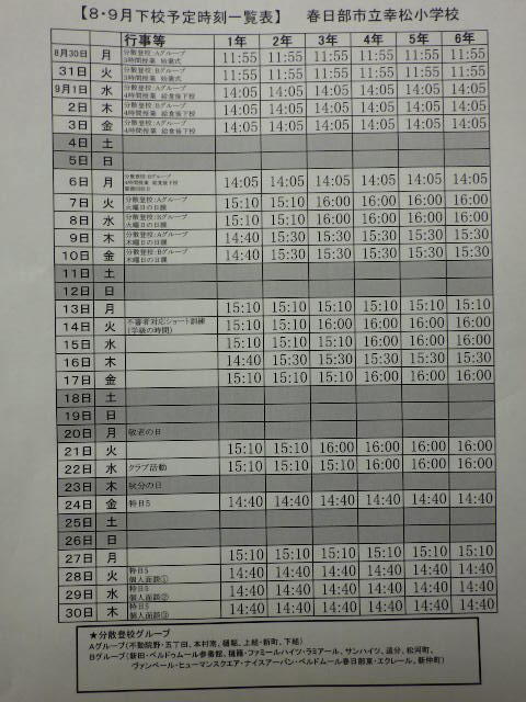8・9月の下校予定時刻