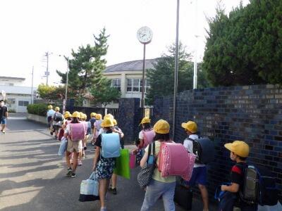 分散登校Aグループの児童が登校してきました。