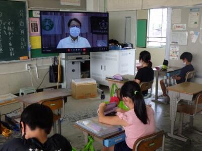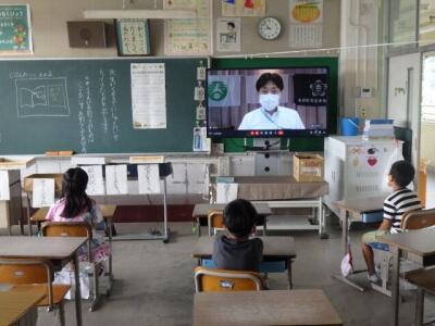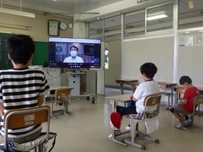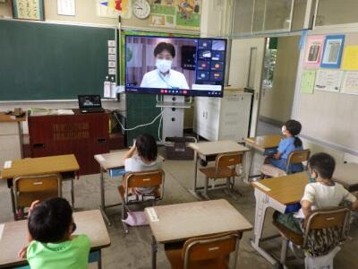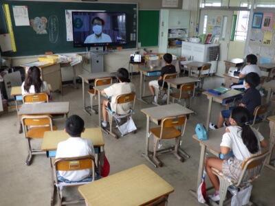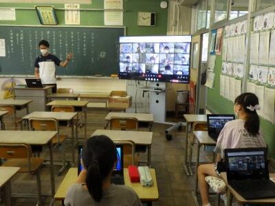 昨年度はZoomによる朝会、1学期は校庭での朝会と、状況に合わせて行ってきました。