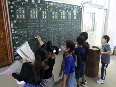 教室での健康観察が終わると、保健係の児童が出欠の人数を記入してくれます。