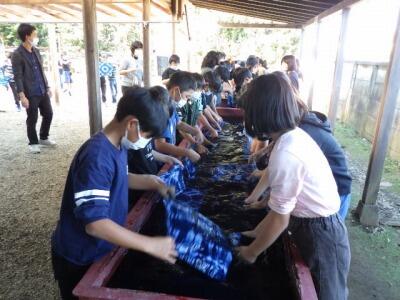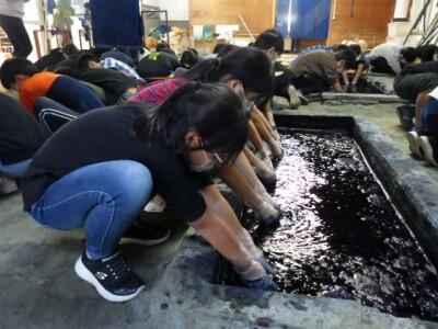 羽生の中島紺屋でハンカチ染めを体験しました。