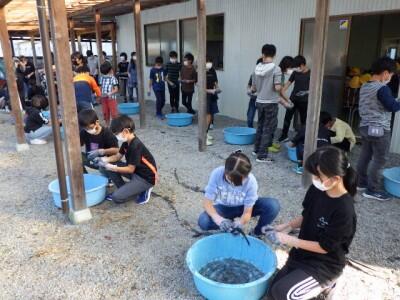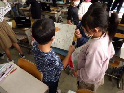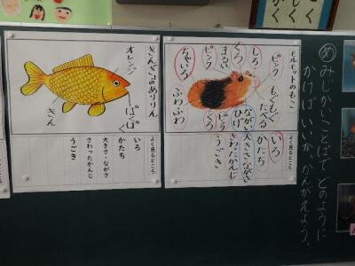 学校にいる生き物について、家の人に知らせる文を書きます。