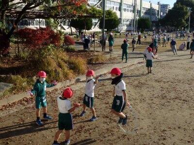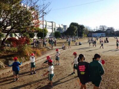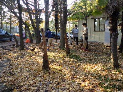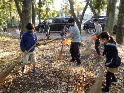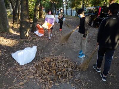 1時間かけて、持久走大会のコースにたまった落ち葉を処理しました。