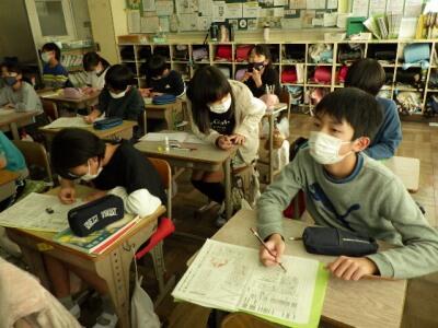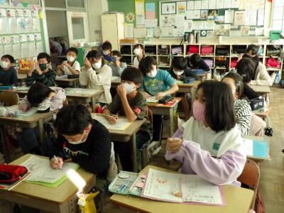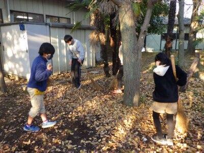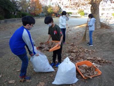 美化福祉委員の児童が、落ち葉はきをしてくれました。