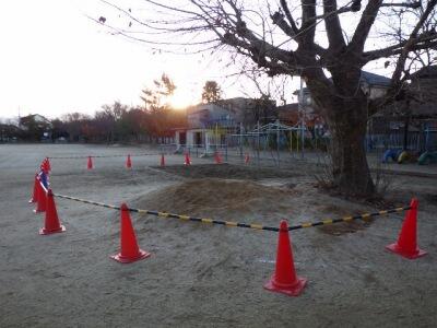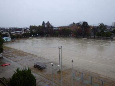 昨日の雨水はなくなり、校庭が使えるようになりました。
