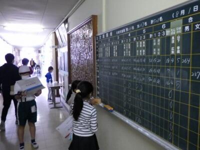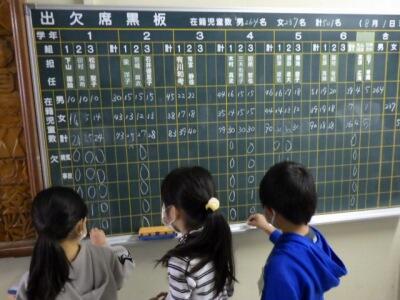 毎日の出欠は、職員室前の出欠黒板で確認することができます。
