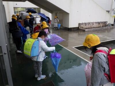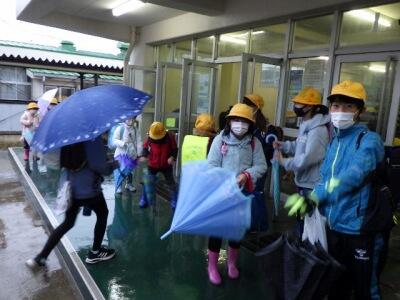 6年生が排水溝の落ち葉を取り除いてくれたので、水がたまることはなくなりました。