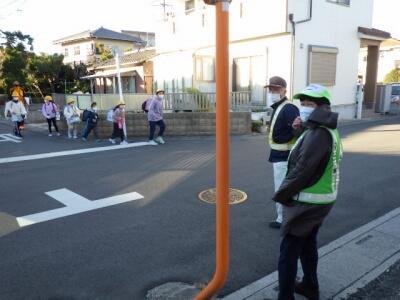 子どもたちの身長と比べると、信号や標識の大きさがわかります。