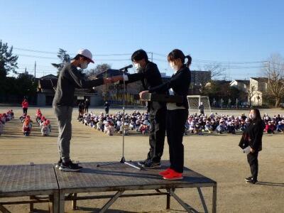 今日は、郷土を描く児童生徒美術展、身体障害者福祉のための埼玉県児童生徒美術展覧会、みどりの絵コンクール、春日部市景観絵画コンクール、校内持久走大会の表彰を行いました。