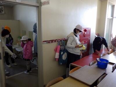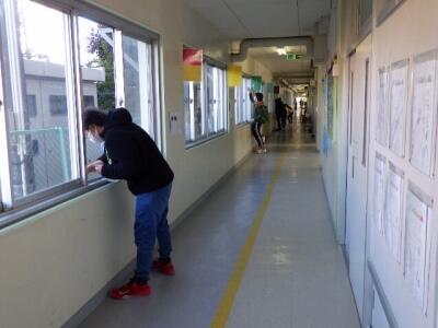児童の大掃除が始まる前に、校舎内のお掃除が始まりました。