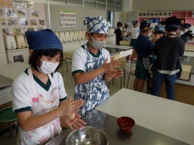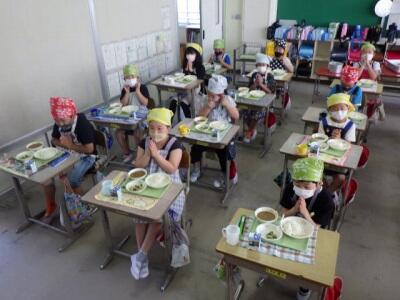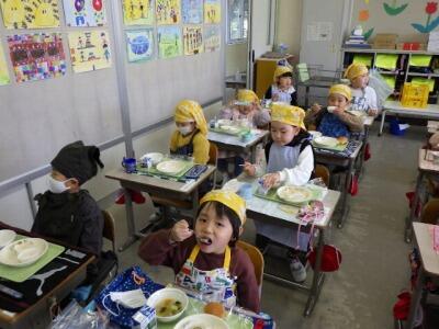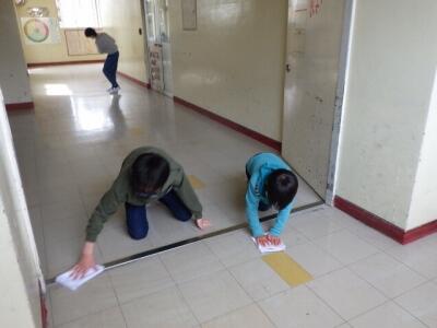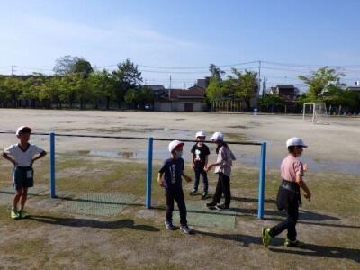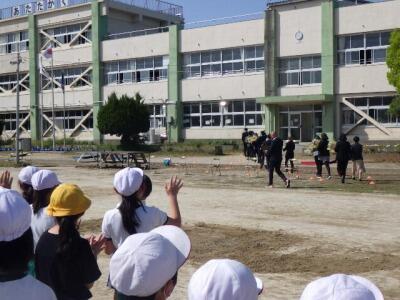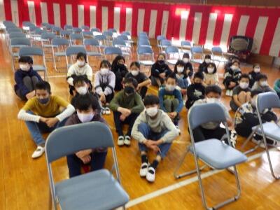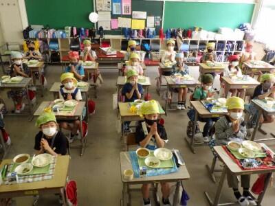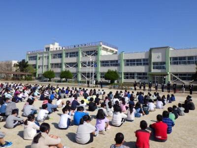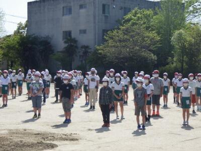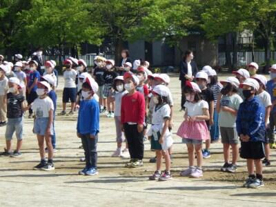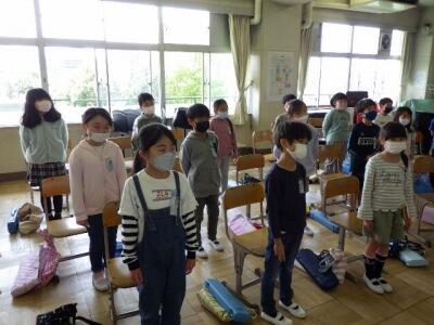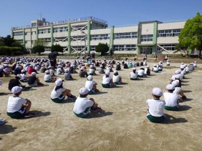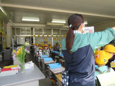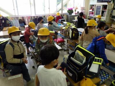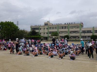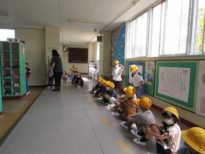 緊急地震速報が流れ、給食室からの火災を想定した避難訓練を行いました。