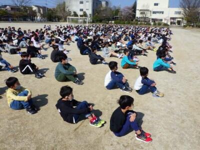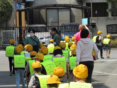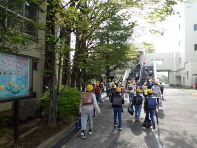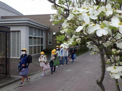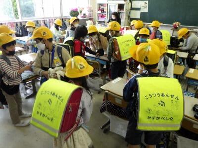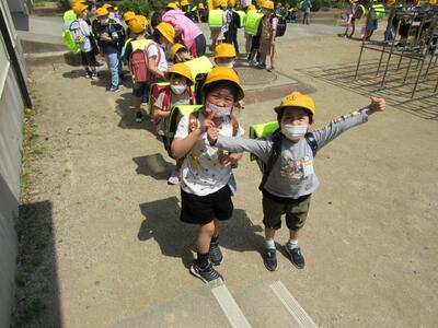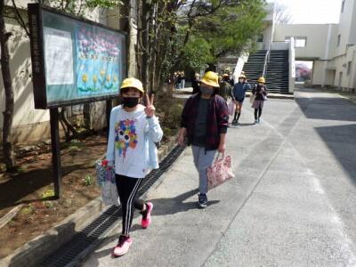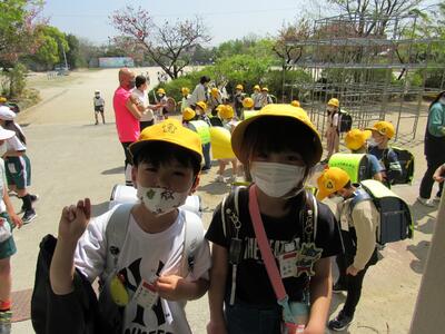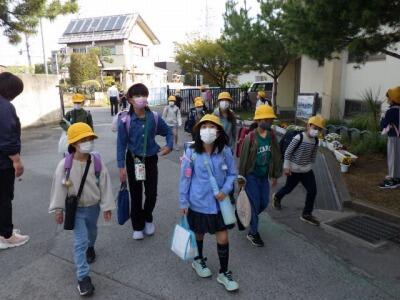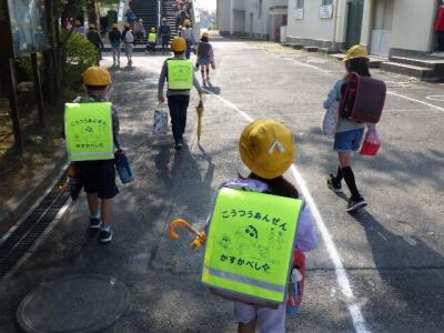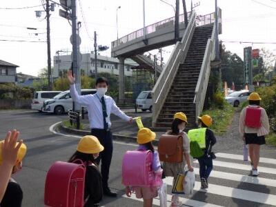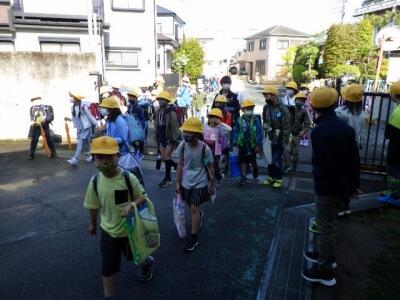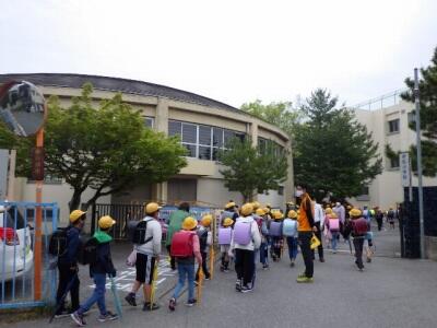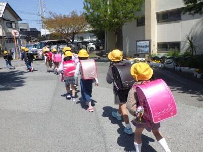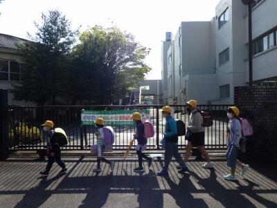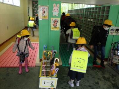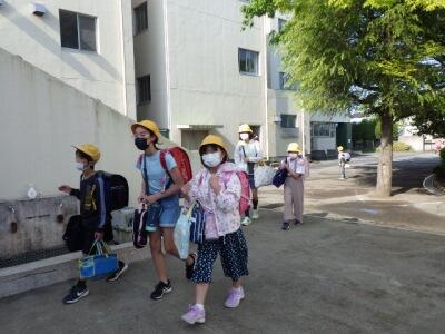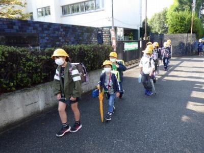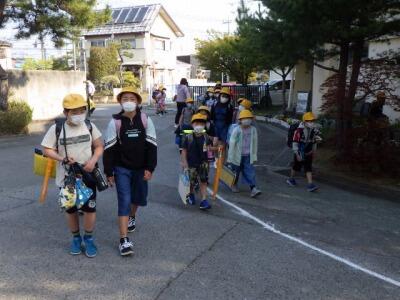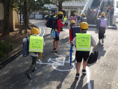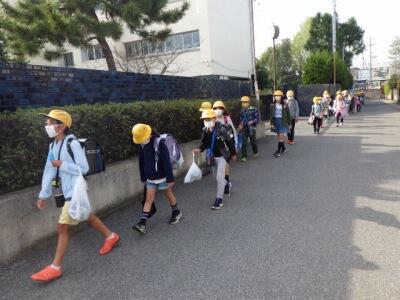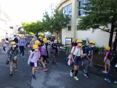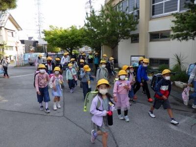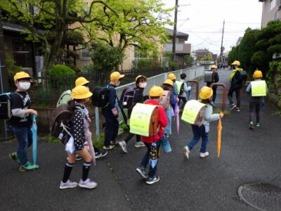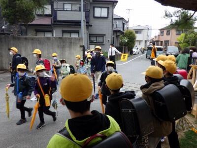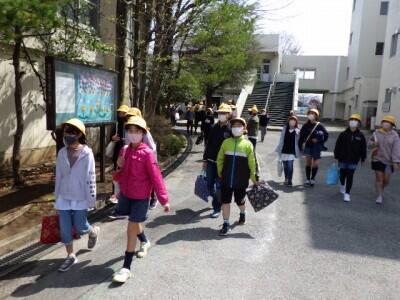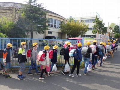 職員とともに、下校班ごとで下校していきます。また明日ね。