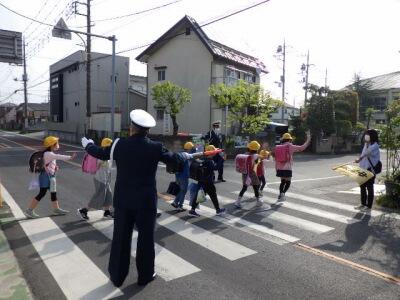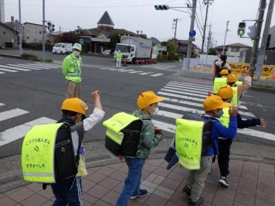 今日から、交通指導員さんが毎日横断歩道に立ってくださることになりました。