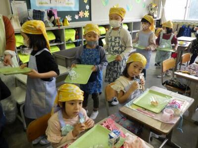 今日はミニ給食。牛乳とツイストパンをいただきました。