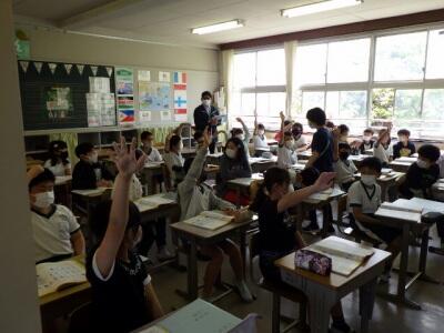 5年生の外国語(英語)は、英語専科の先生とALT(Assistant Language Teacher)が教えてくれます。