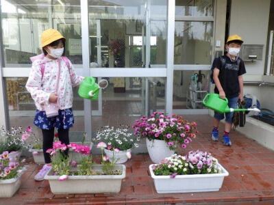 委員会活動がスタートし、朝から園芸委員の児童ががんばっています。