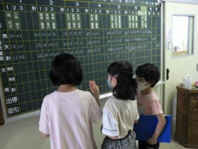 結果は、保健係の児童が職員室前の黒板に記入してくれます。