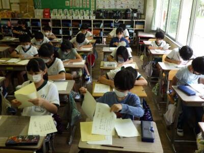 「雨のバス停留所で」というお話を読んで話し合っています。