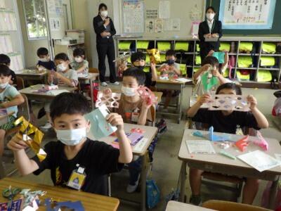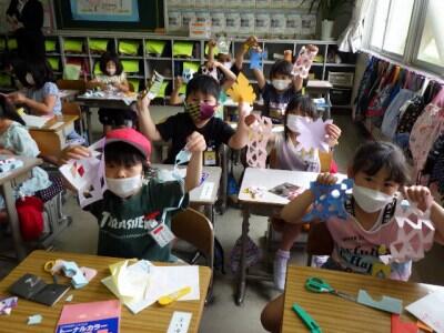 はさみで切り抜くだけで、バラエティーに富んだ作品ができあがりました。