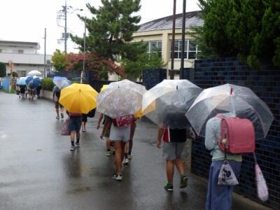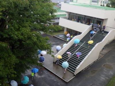 ちょうど登校する時間帯に雨が降り出しました。